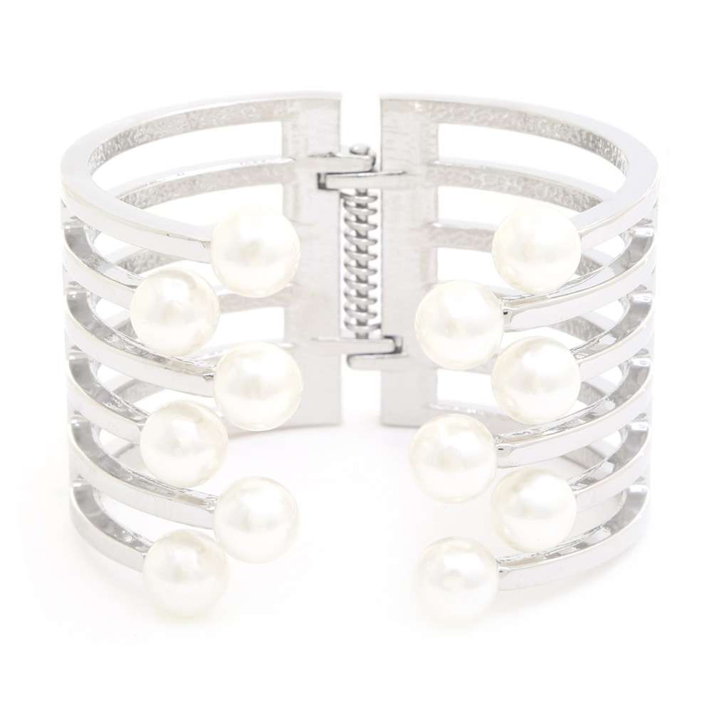 Gold Plated Metal Pearl Cuff Bracelet