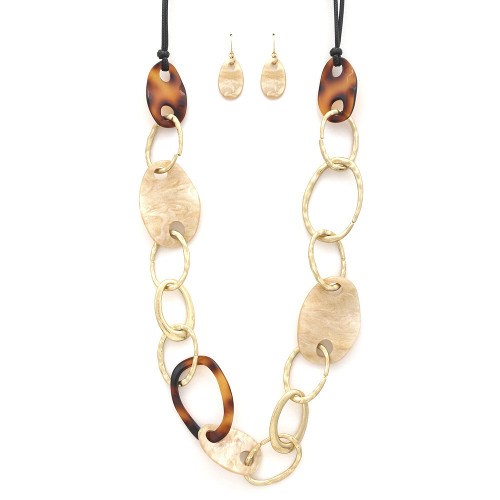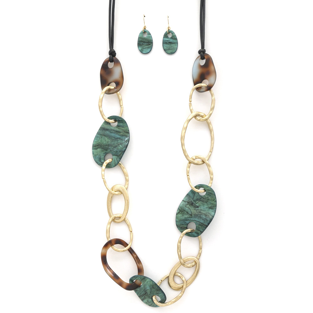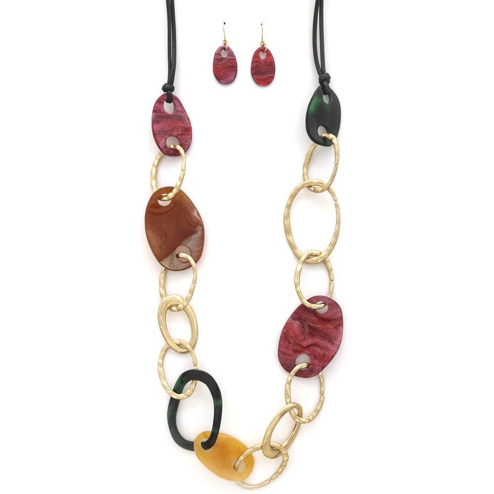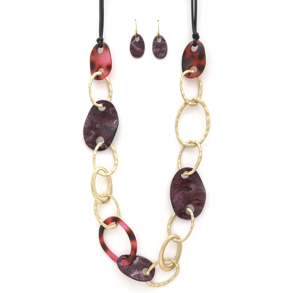 Make a bold fashion statement with the Hammered Metal Oval Link Necklace, available in Red, Multi, Green, and Brown. Embrace the artisanal charm of this necklace, perfect for expressing your unique and sophisticated style.
