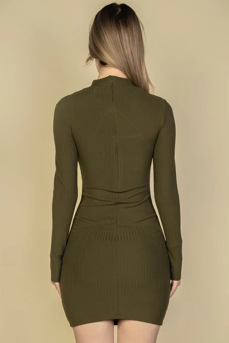Ribbed Cut Out Front Long Sleeve Bodycon Mini Dress. Soft & Light weight high stretch Rib Knit. Women’s dress with very soft stretchy fabric. Feature: Cut out front, mini length, bodycon, ribbed, long sleeve. Occasion: This fashionable bodycon dress is suitable for party, date, holiday, shopping, and daily life. . Suitable for fall and winter wear