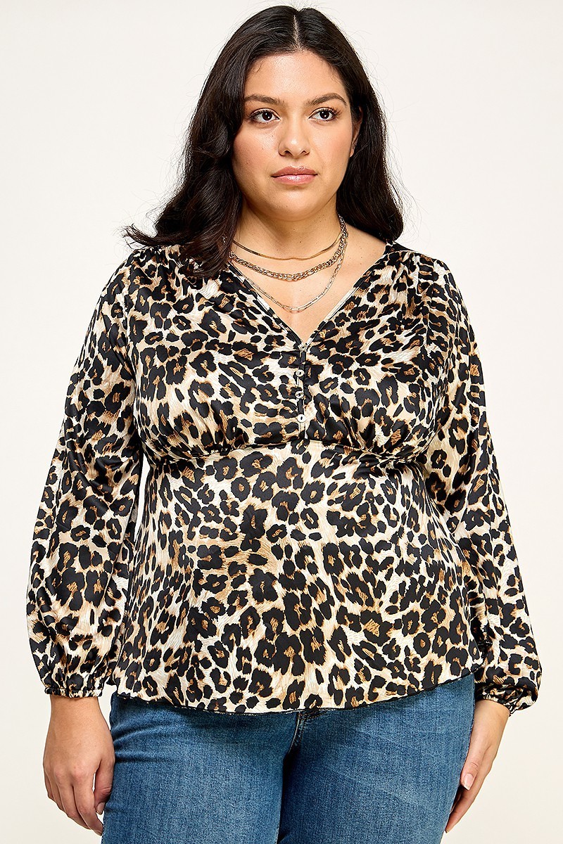 Why Choose Plus Size Satin Animal Leopard Print Babydoll Blouse?